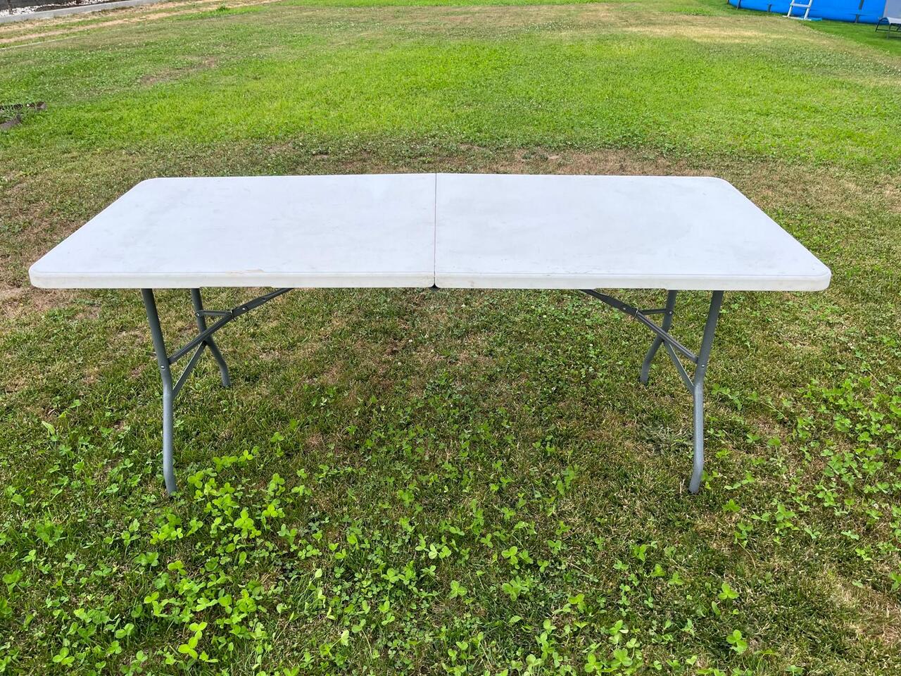 Mesa plegable de acero y polietileno blanco, resistente para uso exterior e interior, modelo Every.